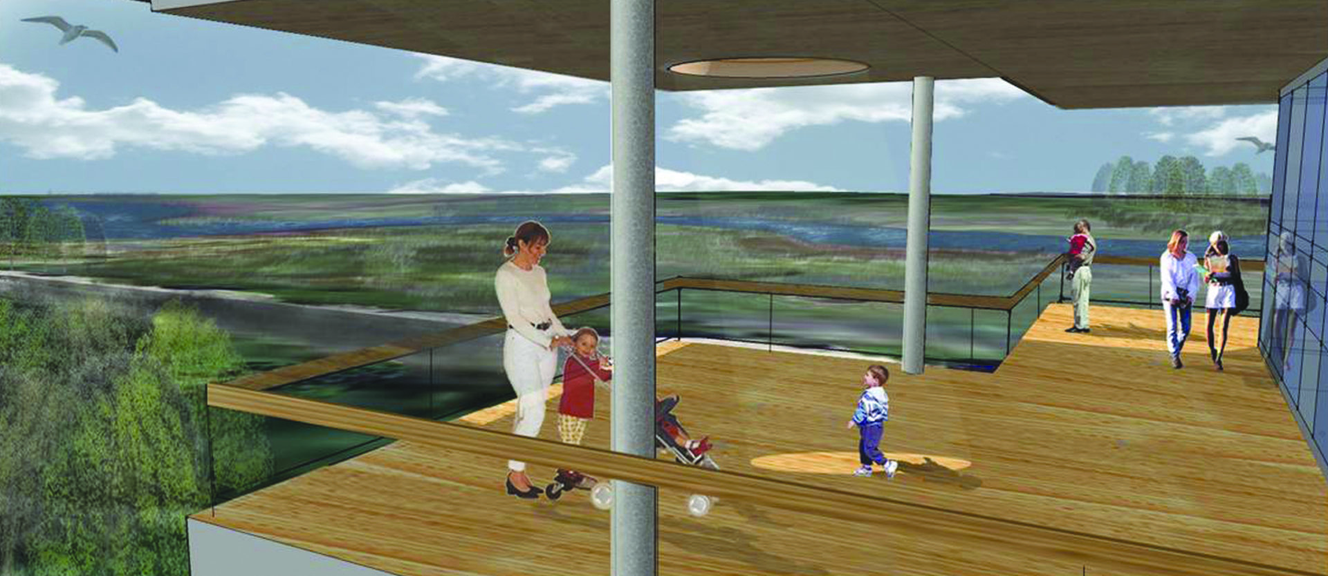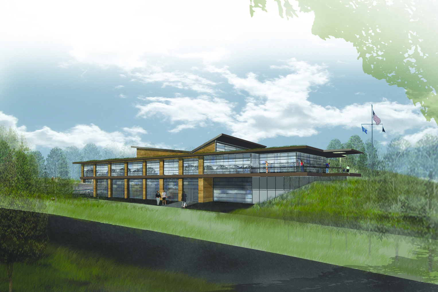The 40,000 square foot “green” center conceptual design includes facilities for marine engine repair, marine biology studies, electronics development, global distance learning communications, public events, and conference opportunities. The design is also envisioned to support environmental sciences, water treatment, alternative energy, homeland security, fisheries, boat building, and repair. The building has capacity to serve 1,000 to 1,500 students and visitors per week.