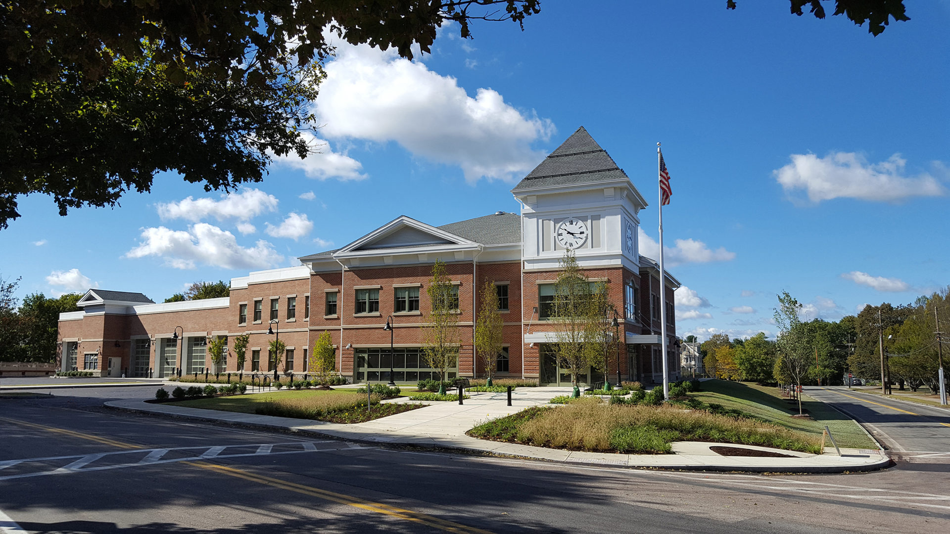 The building design reflects the character of the Town House, which houses the town’s administrative offices, in the historic district. Located on the north end of the district, the public safety building is the “gateway” to the town’s center welcoming visitors and townspeople alike